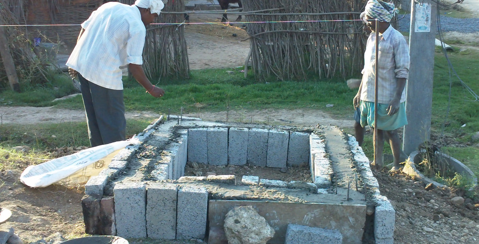 Digging for the footings and reservoir, preparation of the reinforcing steel, handling of materials, and placement of concrete for the footings was conducted by the villagers and volunteers.